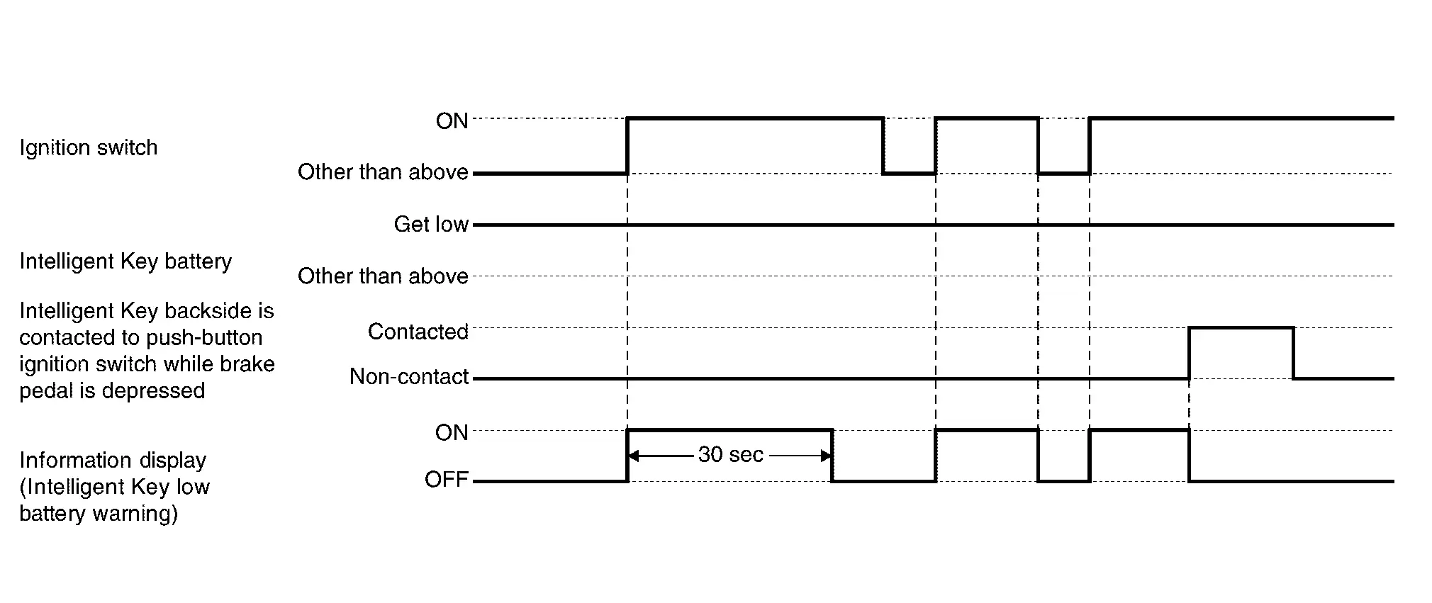 When combination meter receives meter display signal, Intelligent Key low battery warning displays.