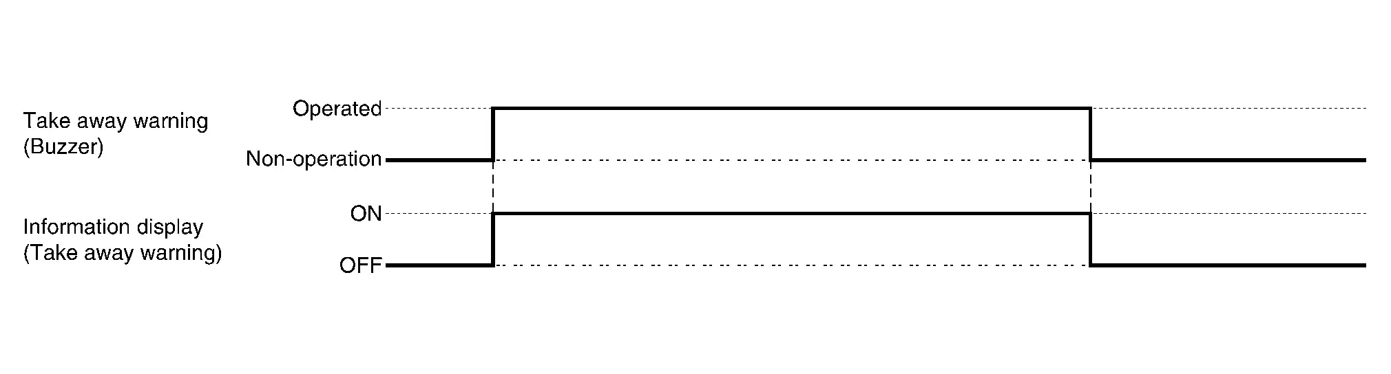 Intelligent Key unit transmits meter display signal to combination meter via CAN communication, when take away warning (buzzer) is operated.
