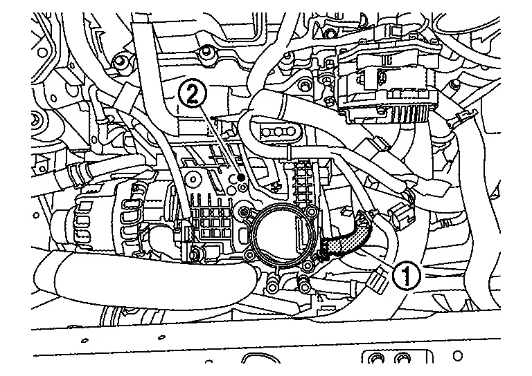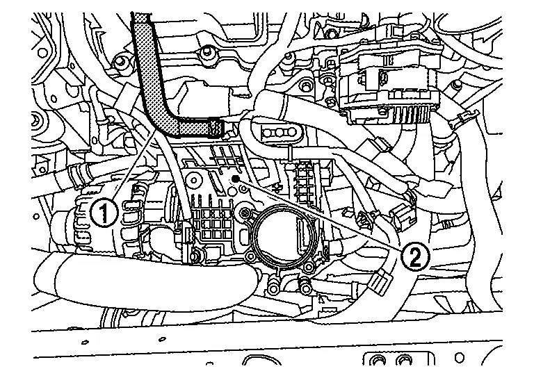 For models without ProPILOT Assist 2.1, disconnect vacuum hose (1) from intake manifold (2).