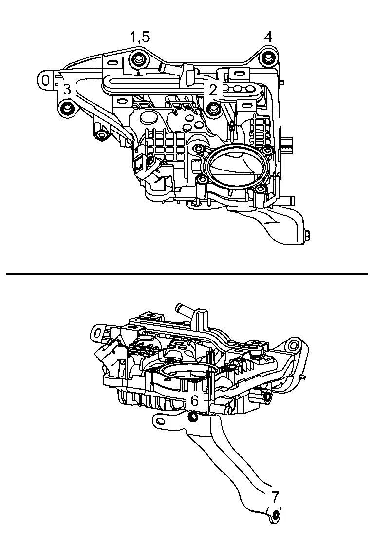Tighten the bolts of electric throttle control actuator in numerical order as shown.