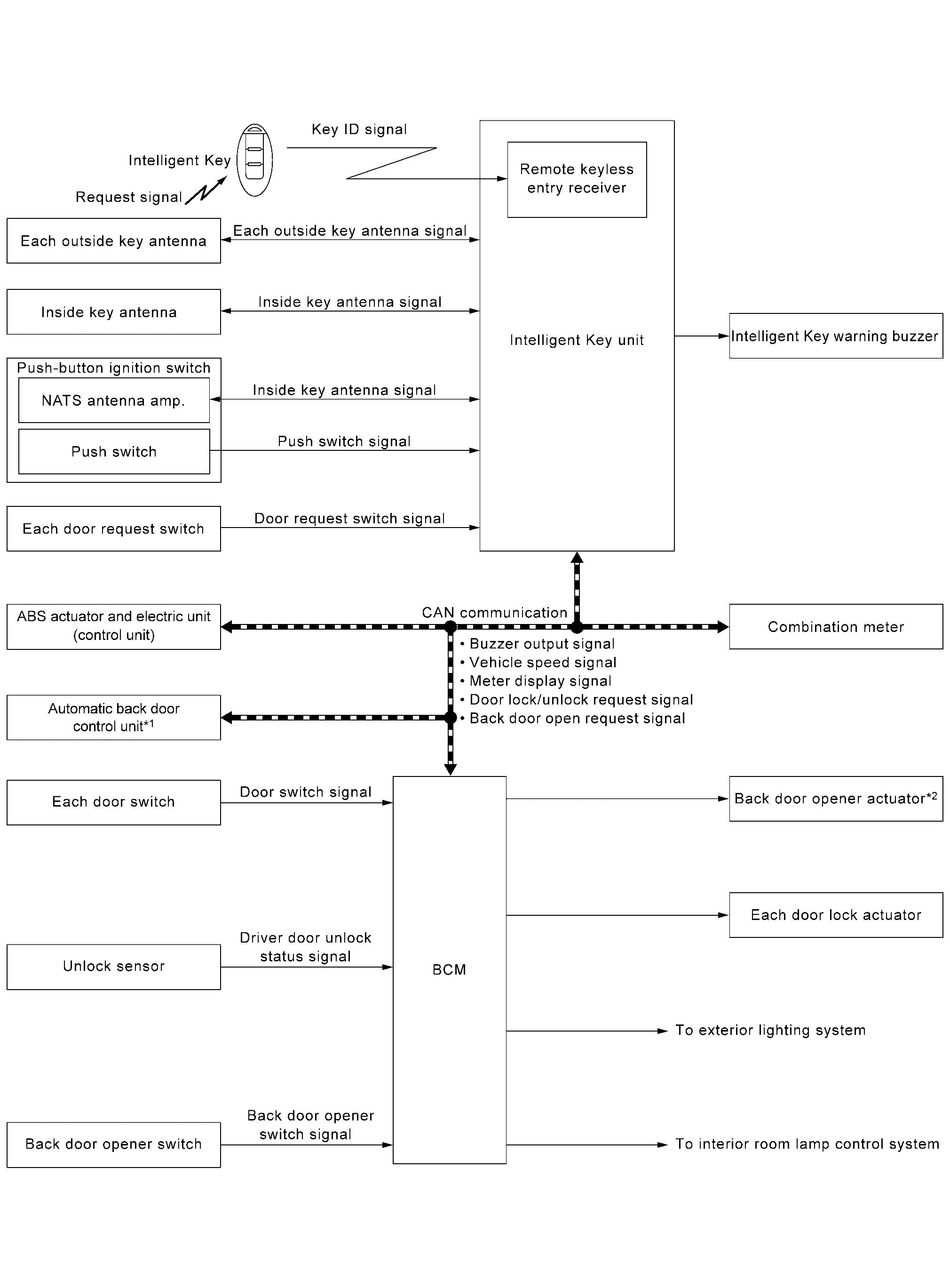| Door lock* | Lock/unlock can be performed by pressing the door request switch. | System Description |