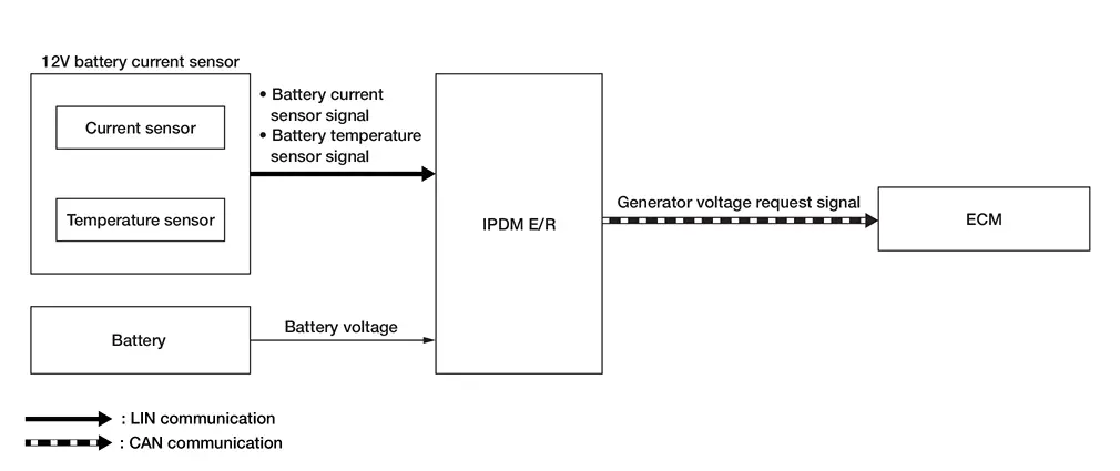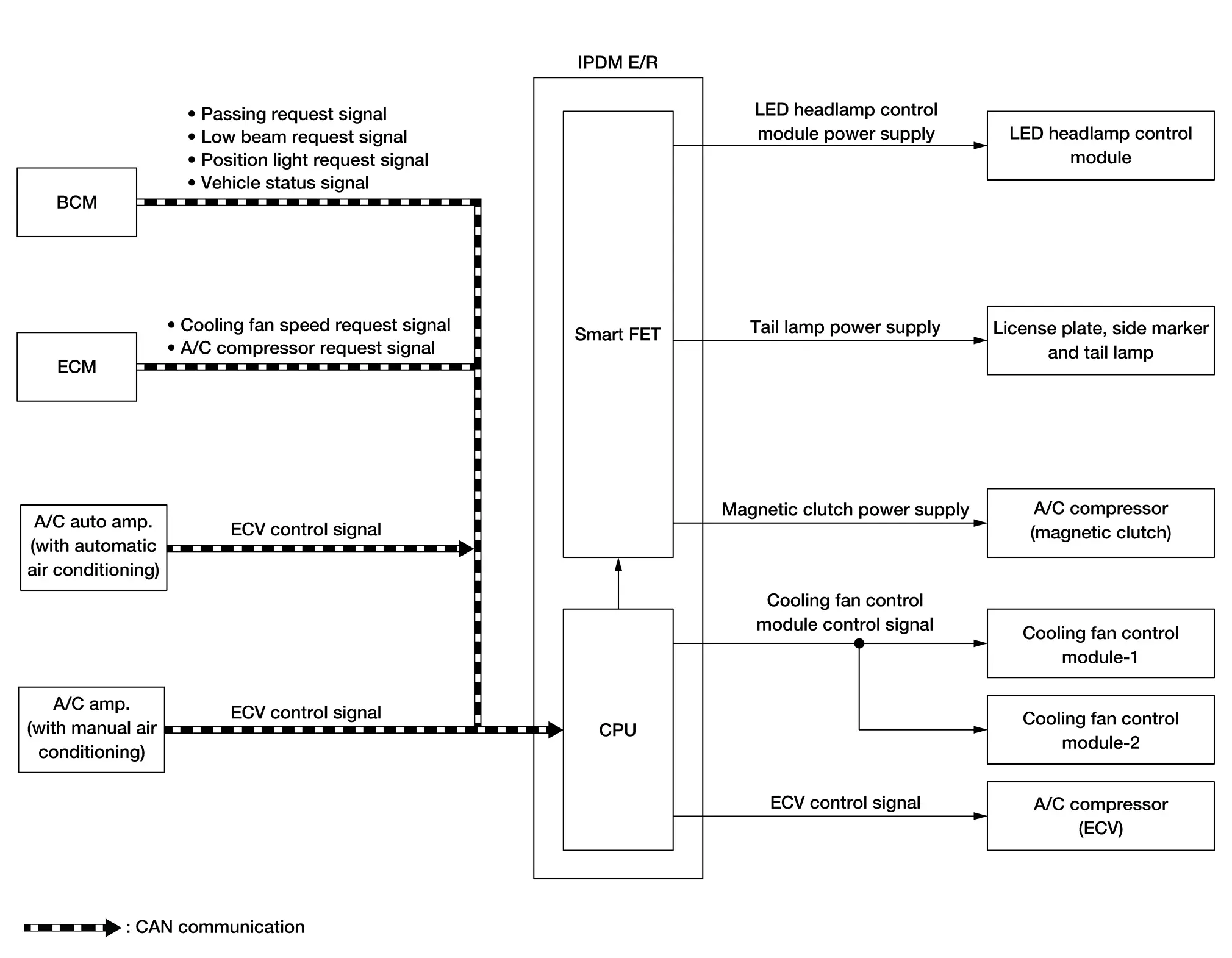 | A/C auto amp. | A/C auto amp. transmits the ECV control signal to the IPDM E/R via CAN communication. |