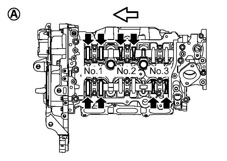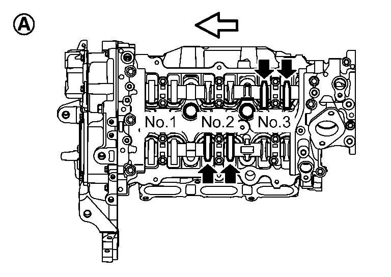 At the same time, check that both intake and exhaust cam noses of No. 1 cylinder face inside (