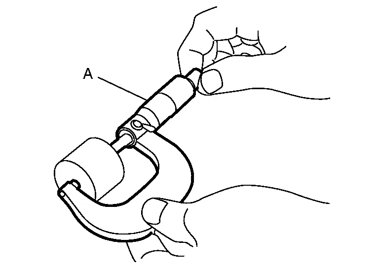 Measure the center thickness of the removed valve lifters with a suitable tool (A).