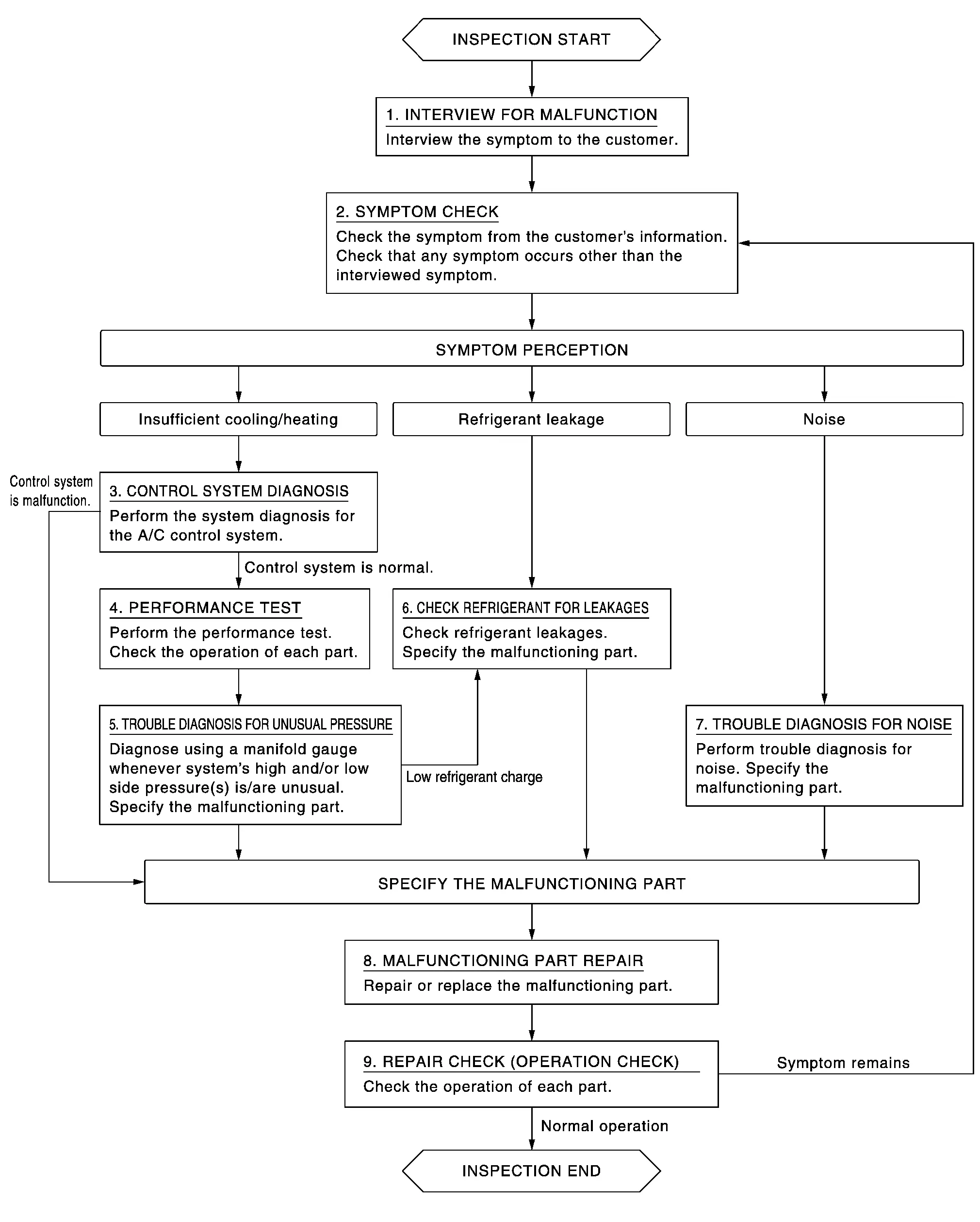 Perform the system diagnosis for the A/C control system. Refer to Work Flow (AUTOMATIC AIR CONDITIONING) or Work Flow (MANUAL AIR CONDITIONING).