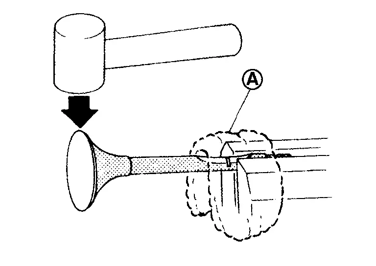 . Strike the valve face end with a hammer, separating it into two pieces.
