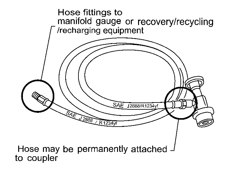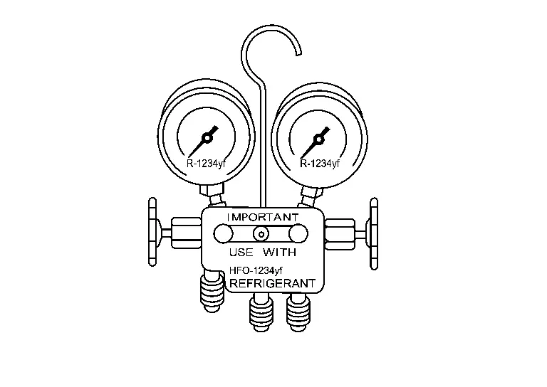 Be certain that the gauge face indicates HFO-1234yf or R-1234yf. Be sure the gauge set has threaded connections for HFO-1234yf (R-1234yf) service hoses. Confirm the set has been used only with refrigerant HFO-1234yf (R-1234yf) and specified lubricants.