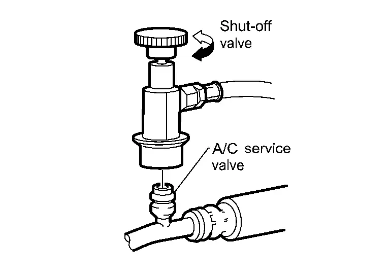 Check that all refrigerant is discharged into the recycling equipment and the pressure in the system is less than atmospheric pressure. Then gradually loosen the discharge side hose fitting and remove it.