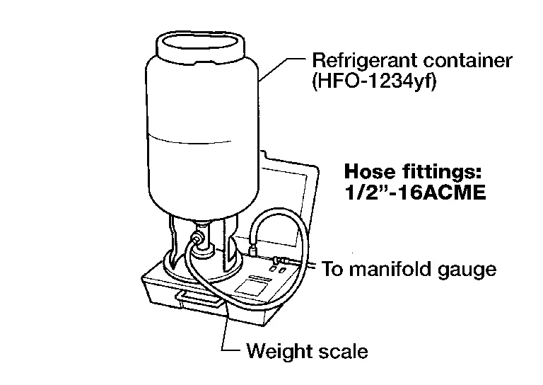 Verify that no refrigerant other than HFO-1234yf (R-1234yf) and specified lubricants have been used with the scale. The hose fitting must be 1/2″-16 ACME if the scale controls refrigerant flow electronically.