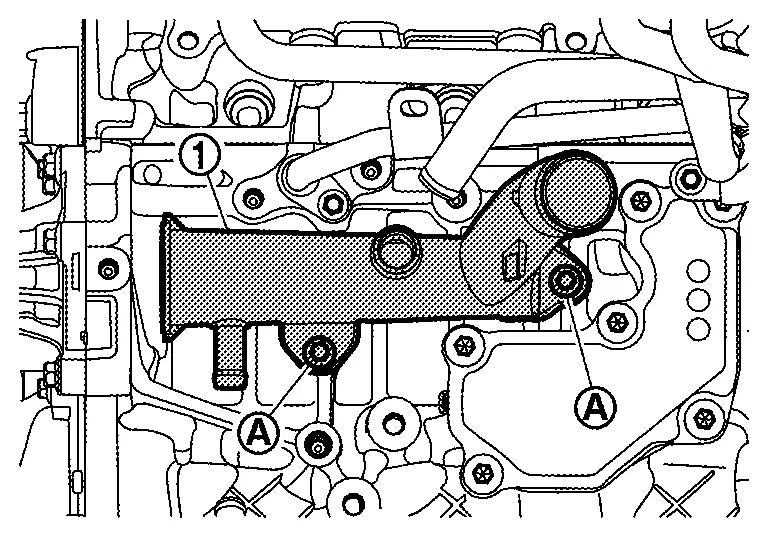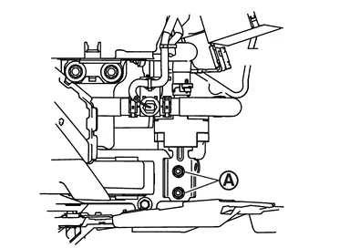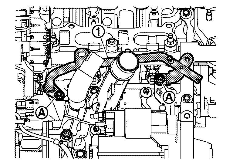Remove water pipe 2 mounting bolts (A), and then remove water pipe 2 (1) from engine.
