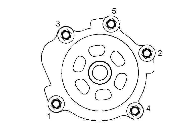 Tighten the multi-way control valve bolts to the specified torque in the sequence shown.