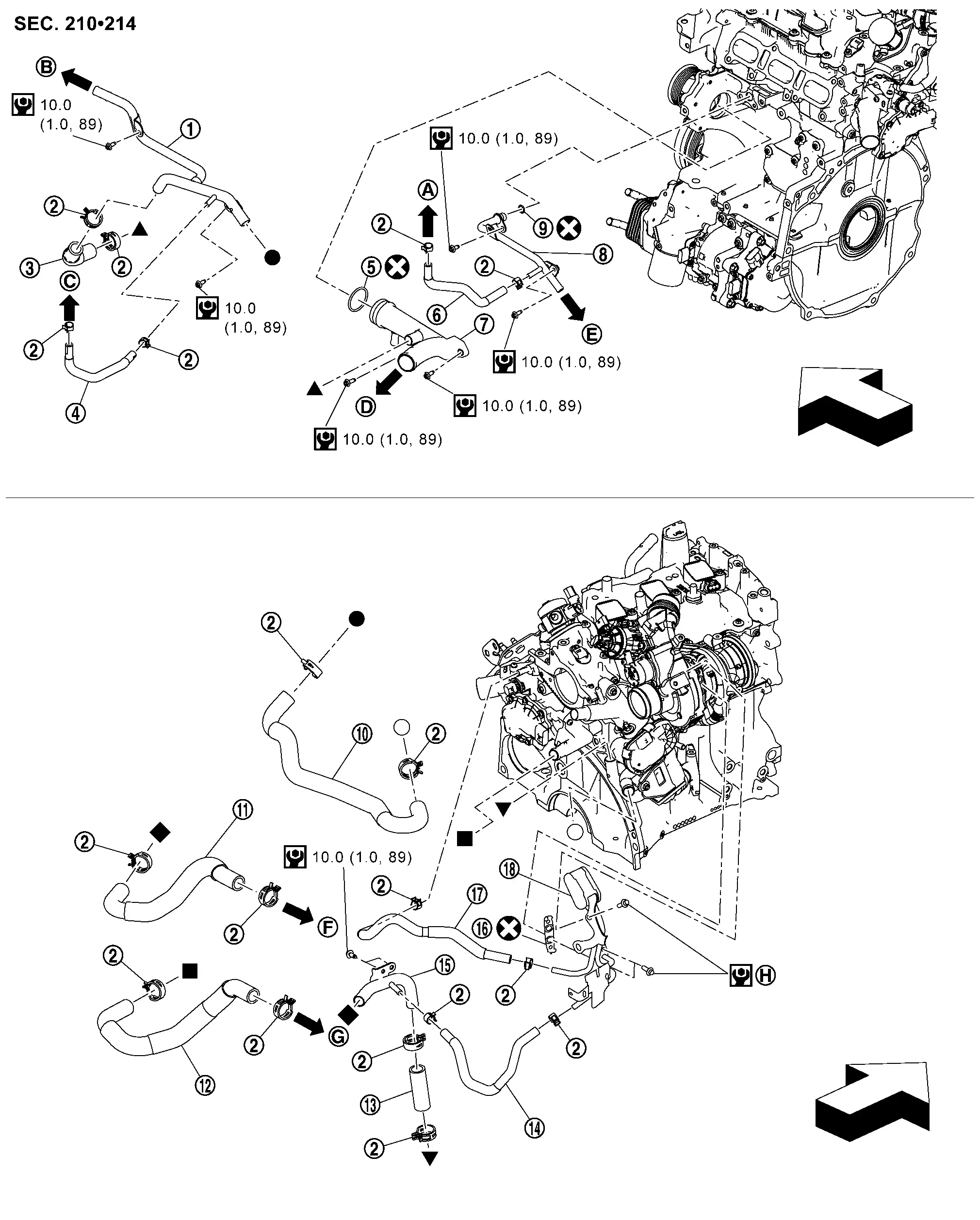 | 13. | Mounting rubber (lower) | 14. | Engine coolant temperature sensor 2 | 15. | O-ring |