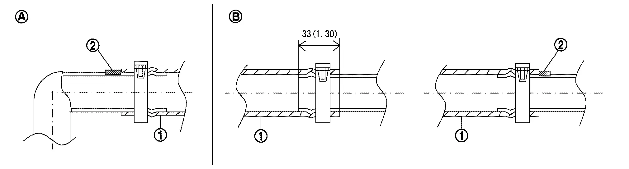 *Refer to the illustrations for the specific position each hose clamp tab.