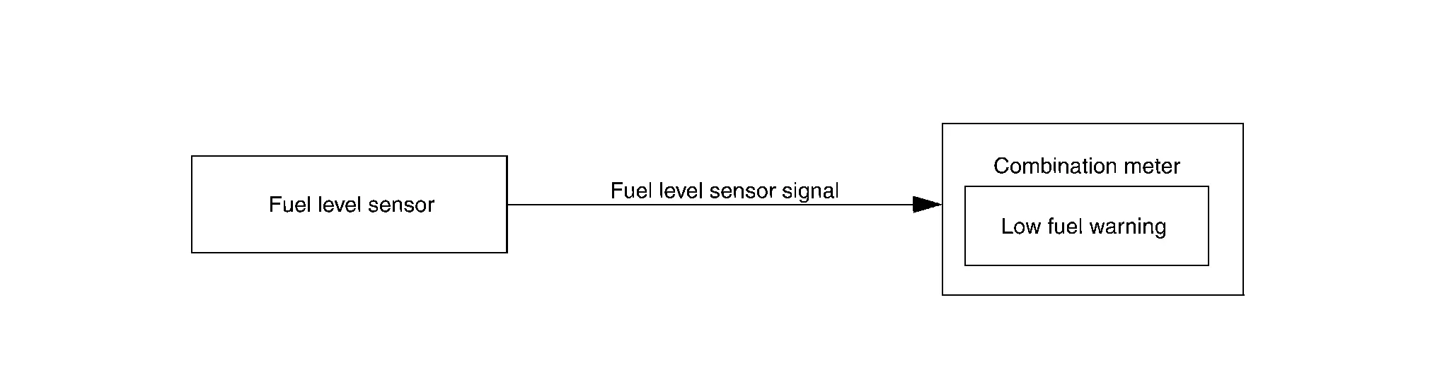The combination meter receives fuel level sensor signal (resistance value) from the fuel level sensor unit and indicates low fuel level warning on the Nissan Ariya vehicle information display when fuel level sensor signal (resistance value) is less than the specified value.