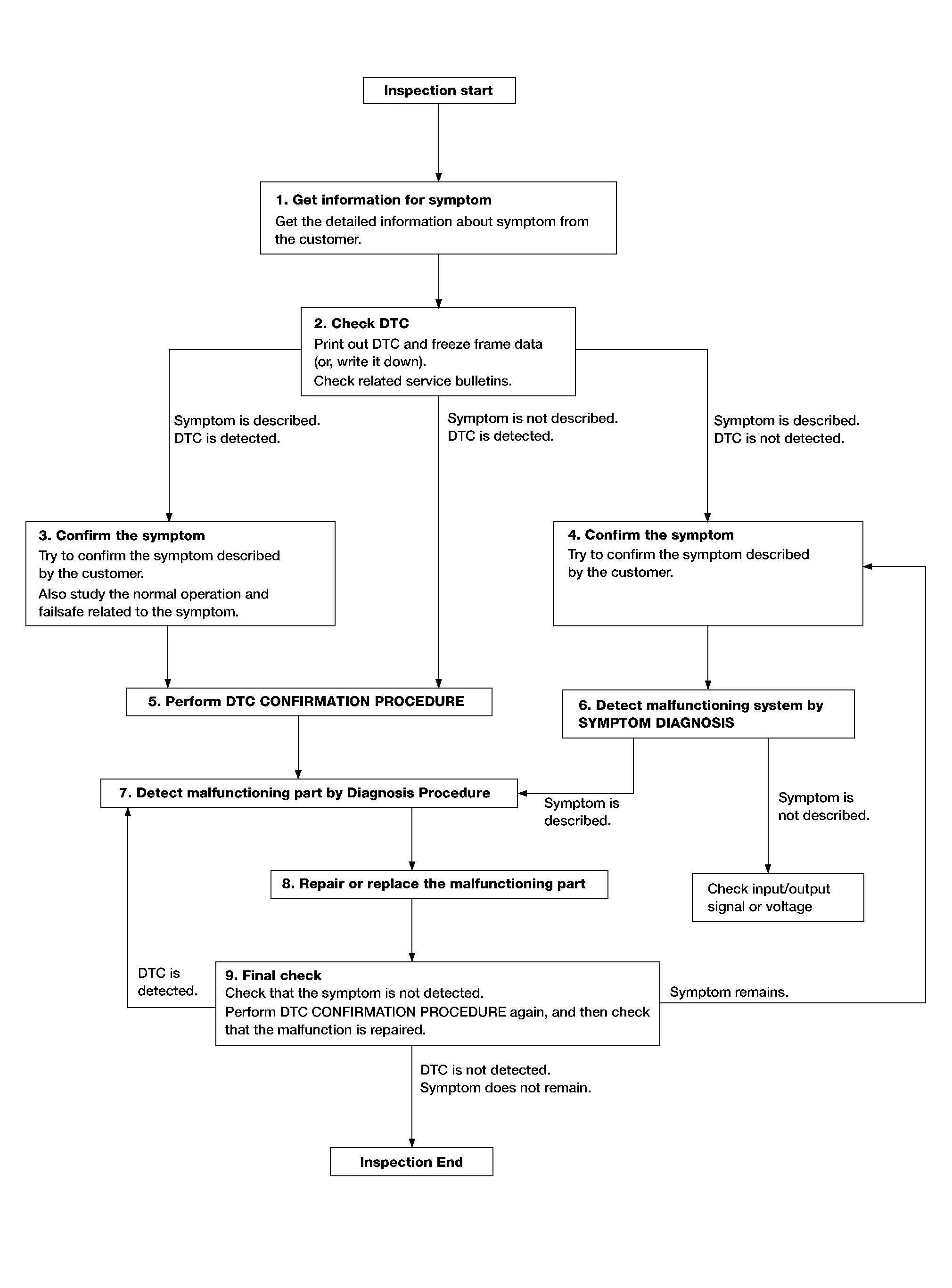 When symptom is described by the customer, refer to confirmed symptom in step 3 or 4, and check that the symptom is not detected.