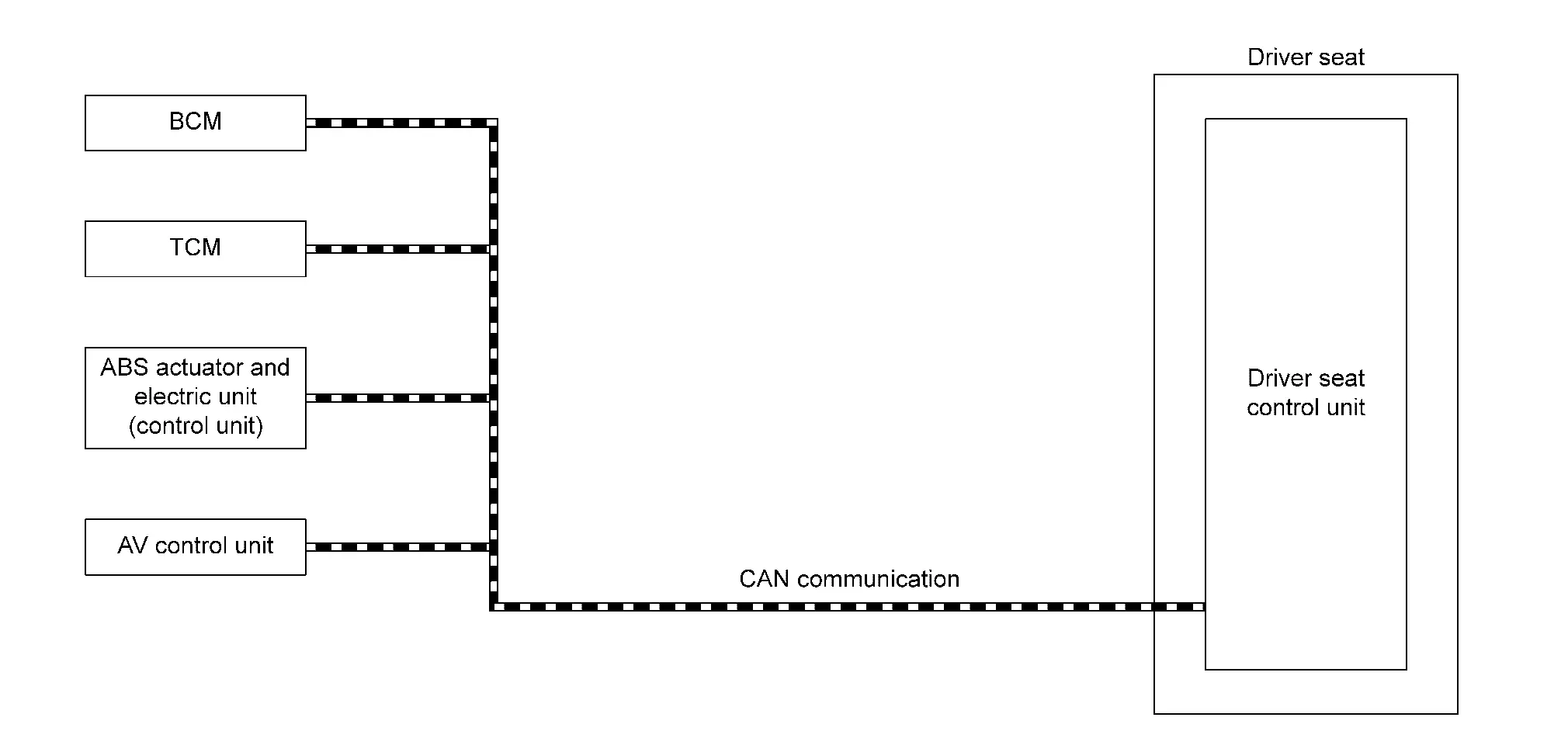 | TCM | TCM transmits the shift position signal to driver seat control unit via CAN communication. | |