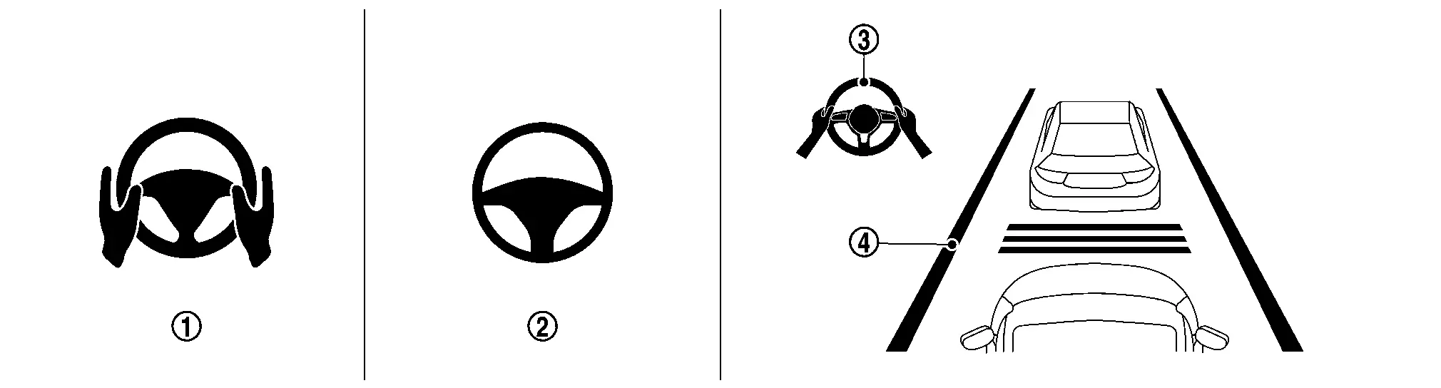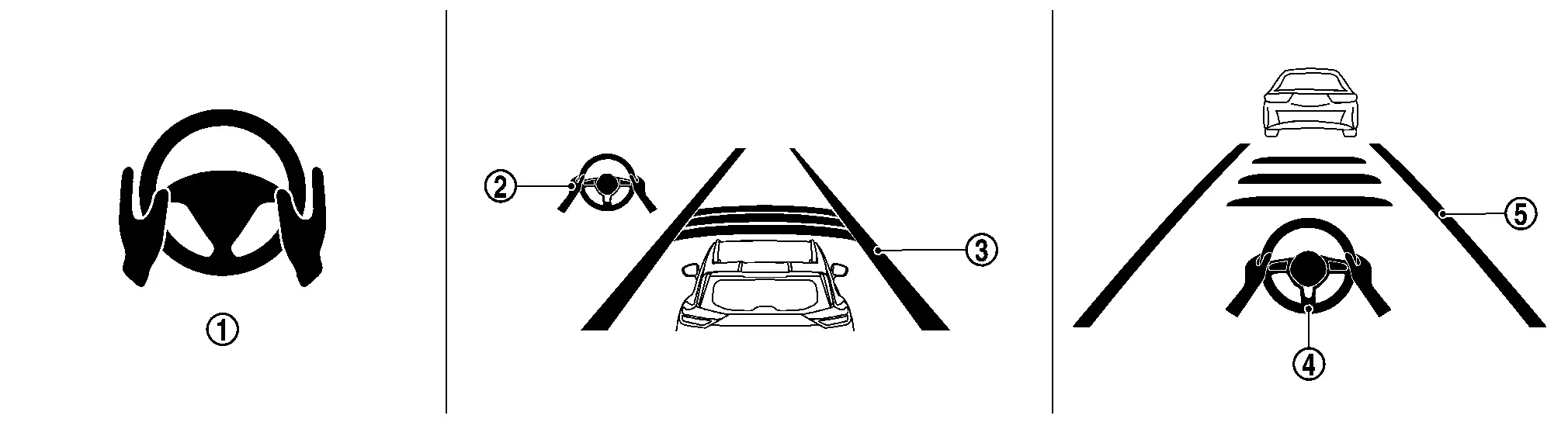 Steering assist status indicator (Information display) | The steering assist status is indicated by different colors and shapes |