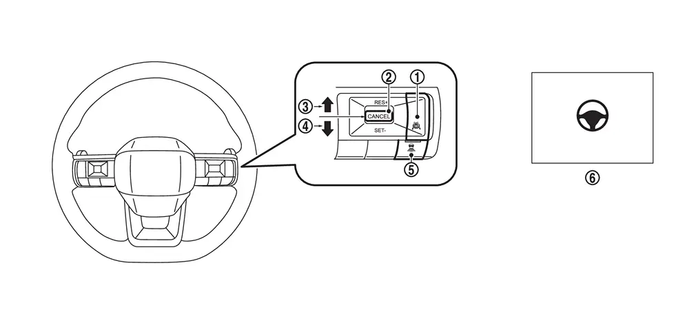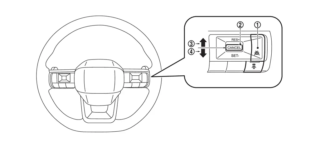 CANCEL switch | Pressing the switch cancels ProPILOT Assist 1.1 control |