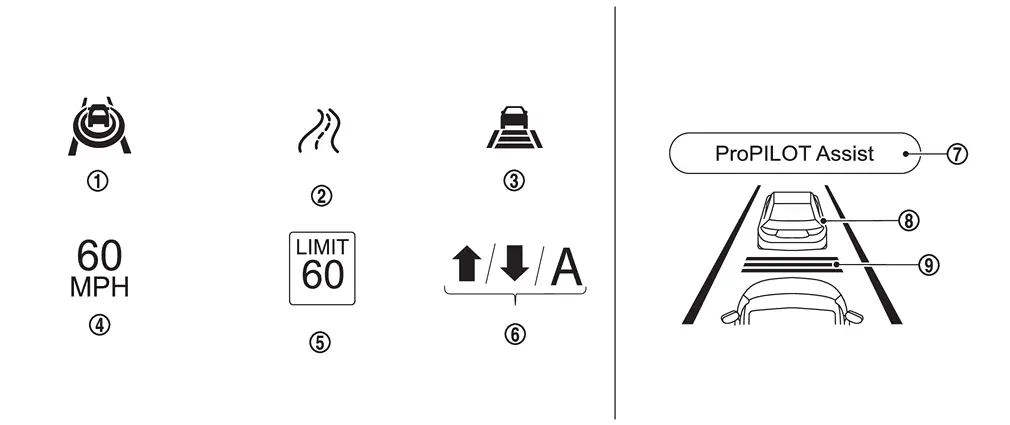 ProPILOT Assist status indicator | Indicates the status of ProPILOT Assist 1.1 system |