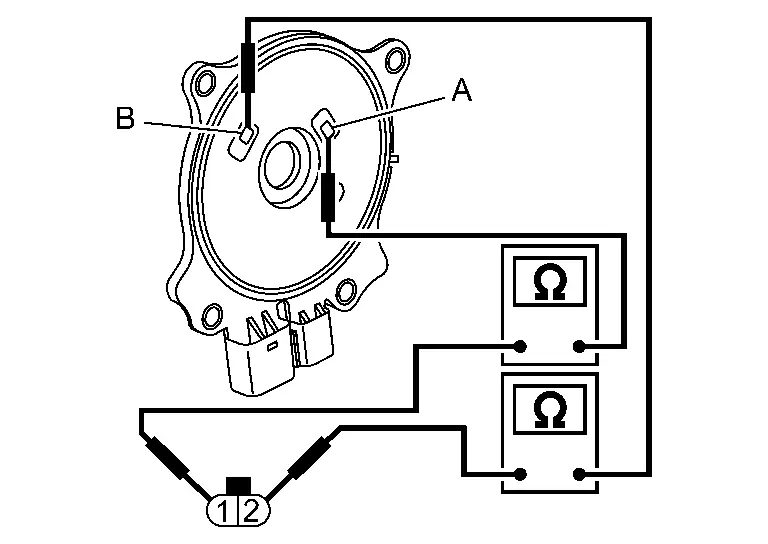 Electric intake valve timing control actuator Continuity Terminal Brush 1 A Existed B Not existed 2 B Existed A Not existed