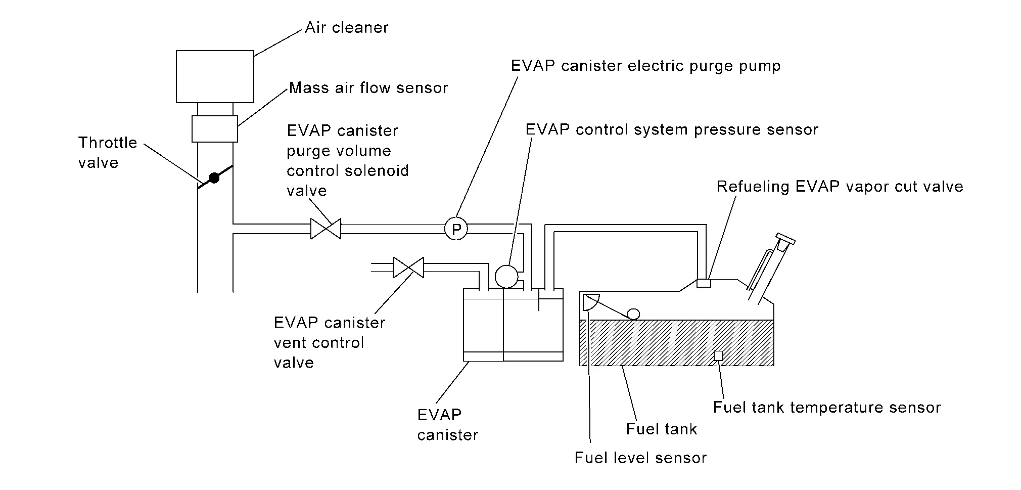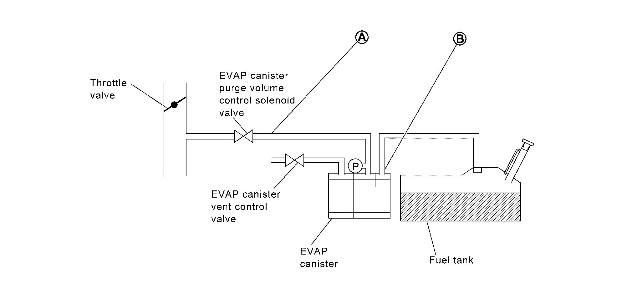 EVAP system vapor line (EVAP system tank vapor line restricted/blocked) |