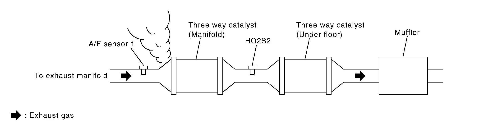To judge malfunctions, this diagnosis measures response time of the A/F signal computed by ECM from the A/F sensor 1 signal. The time is compensated by engine operating (speed and load), fuel feedback control constant, and the A/F sensor 1 temperature index. Judgment is based on whether the compensated time (the A/F signal cycling time index) is inordinately long or not.