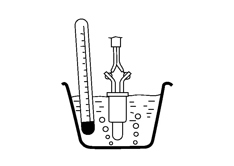 Check resistance between fuel level sensor unit and fuel pump terminals by heating with hot water as shown in the figure.