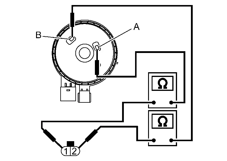Electric intake valve timing control actuator Continuity Terminal Brush 1 A Existed B Not existed 2 B Existed A Not existed
