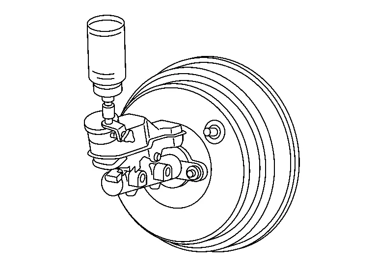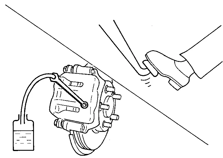 Depress the brake pedal and loosen the bleeder valve to gradually discharge brake fluid.