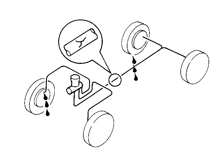 Depress the brake pedal with a force of 785 N (80 kg, 176 lb) and hold down the pedal for approximately 5 seconds with the engine running. Check for any fluid leakage.