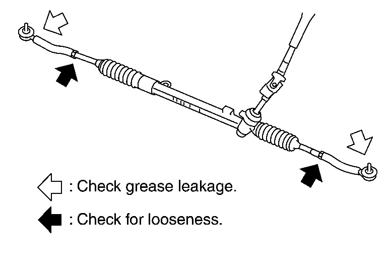 Check ball joint, dust cover and other component parts for looseness, wear, damage and grease leakage.
