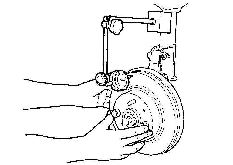 Inspect the runout with a dial indicator to measure at 10 mm (0.39 in) inside the disc edge.