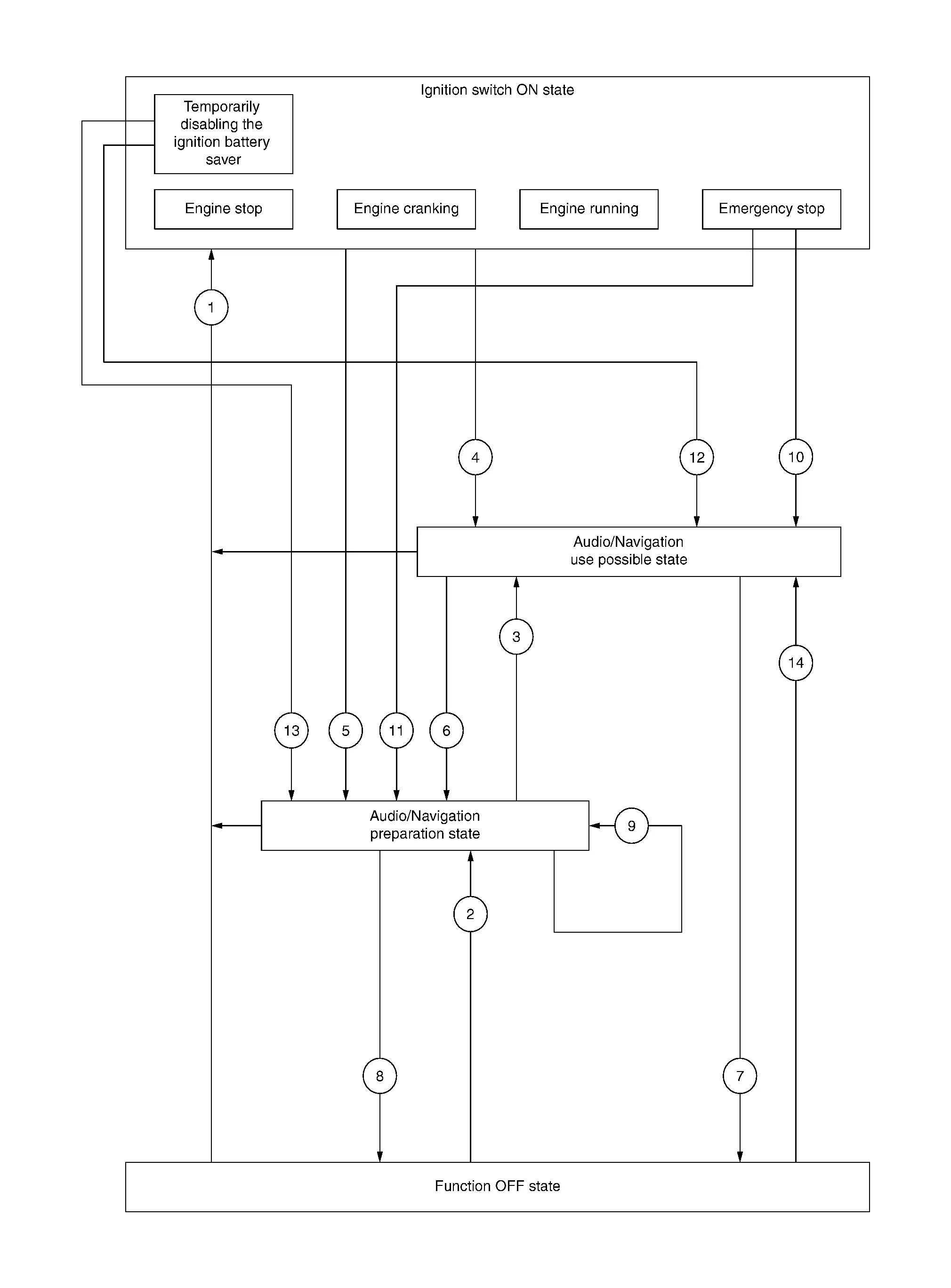 Shifting from “Function OFF state” to “Audio/Navigation preparation state” |
