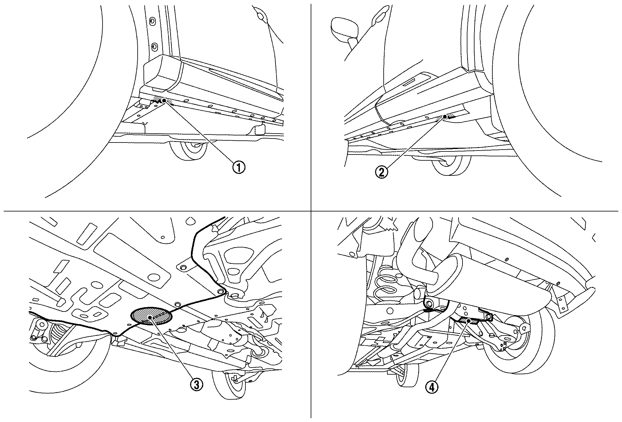Never get under the vehicle while it is supported only by the jack. Always use safety stands when you have to get under the Nissan Ariya vehicle.
