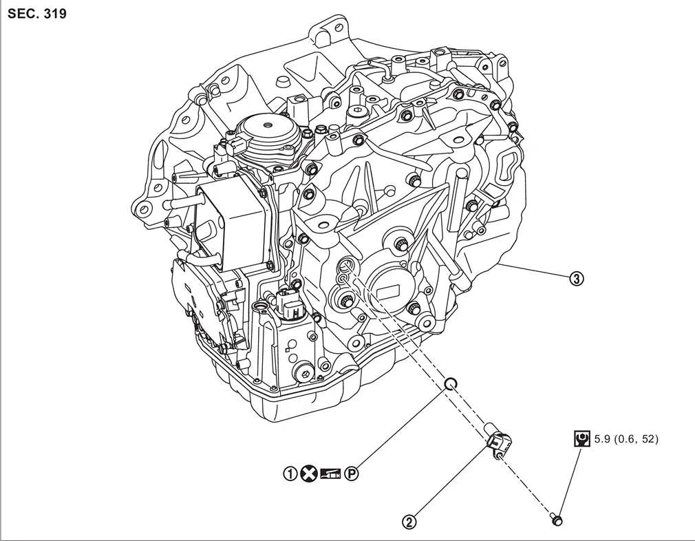 | 1. | O-ring | 2. | Primary speed sensor | 3. | Transaxle assembly |