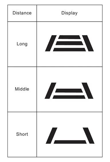 Check that the set distance indicator changes display in order of: (Long)→(Middle)→(Short).