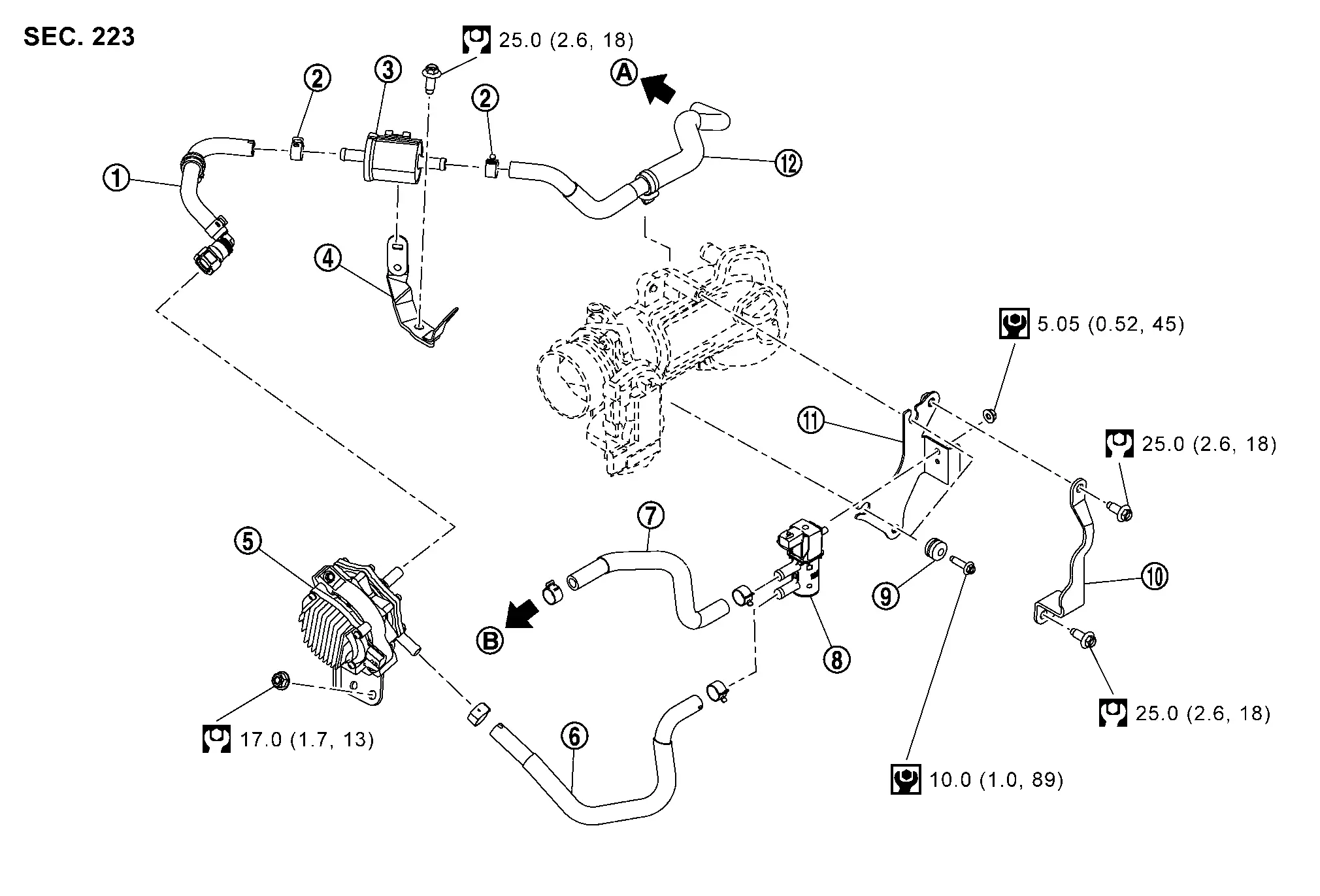 | A | To EVAP canister. Refer to Hydraulic Layout. | B | To air duct. Refer to Exploded View. | — | — |