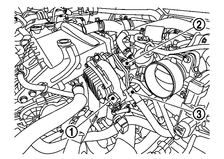 | 10. | Purge control valve bracket 2 | 11. | Purge control valve bracket 1 | 12. | Resonator hose 2 |