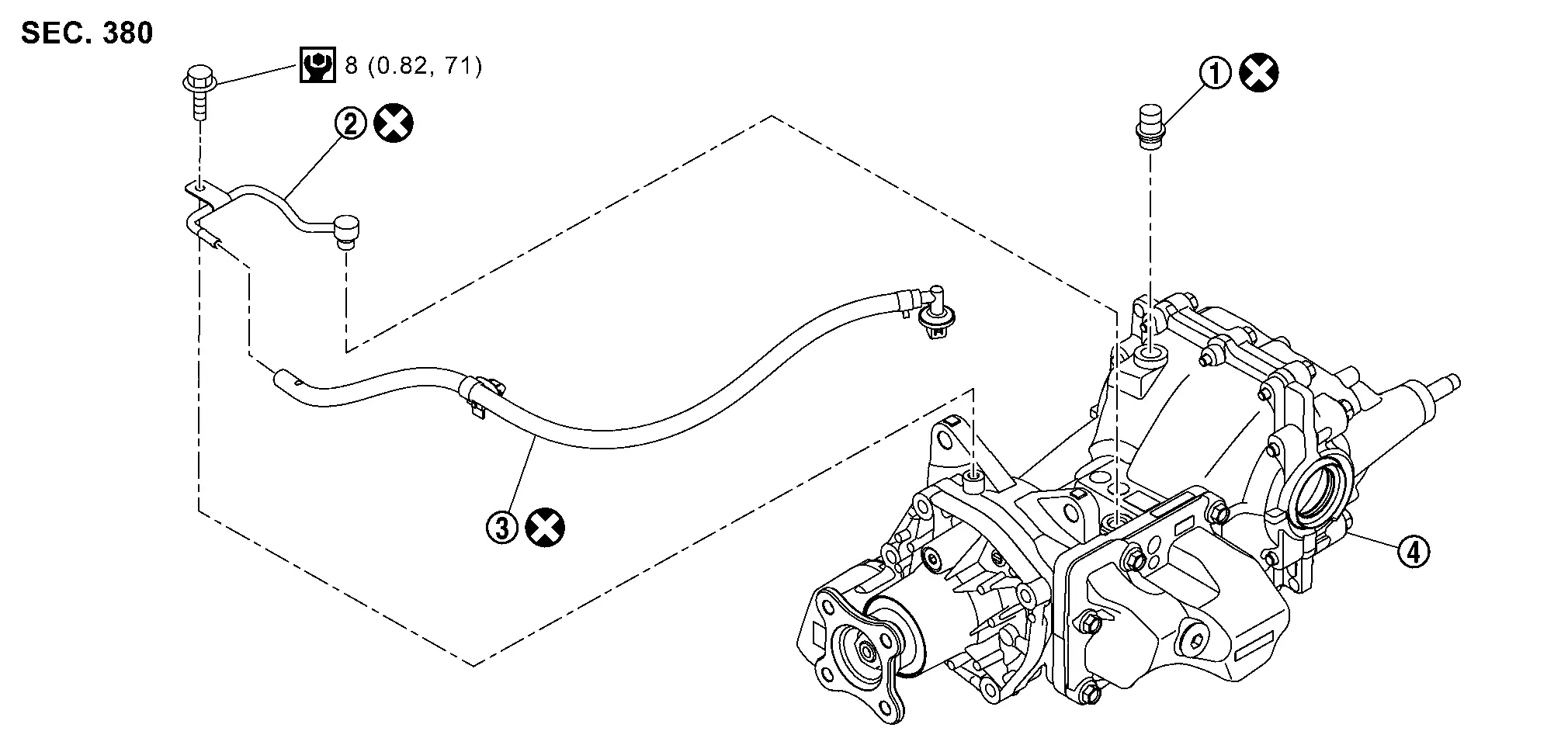 When removing/installing breather assembly (1-way), remove rear final drive assembly from the Nissan Ariya vehicle. Refer to Removal and Installation.