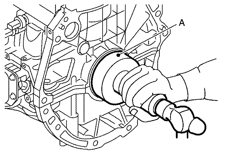 Press-fit rear oil seal with a suitable drift (A) outer diameter 115 mm (4.53 in) and inner diameter 90 mm (3.54 in).