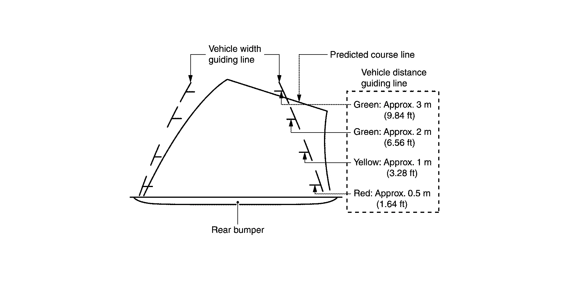 Vehicle Width Guide Lines and Predicted Course Lines Display Function