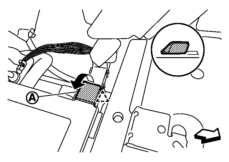 Disengage pawl, and then remove positive terminal cover (A) part of 12V sub battery (lithium ion battery) in the direction of the arrow.