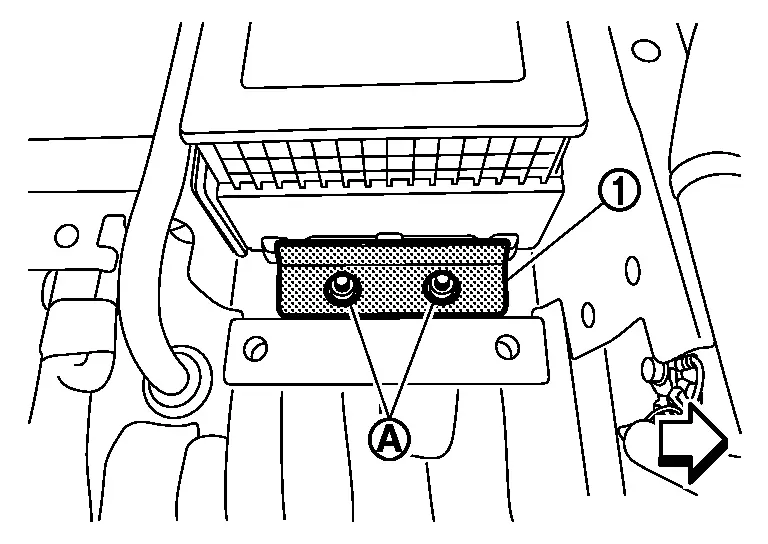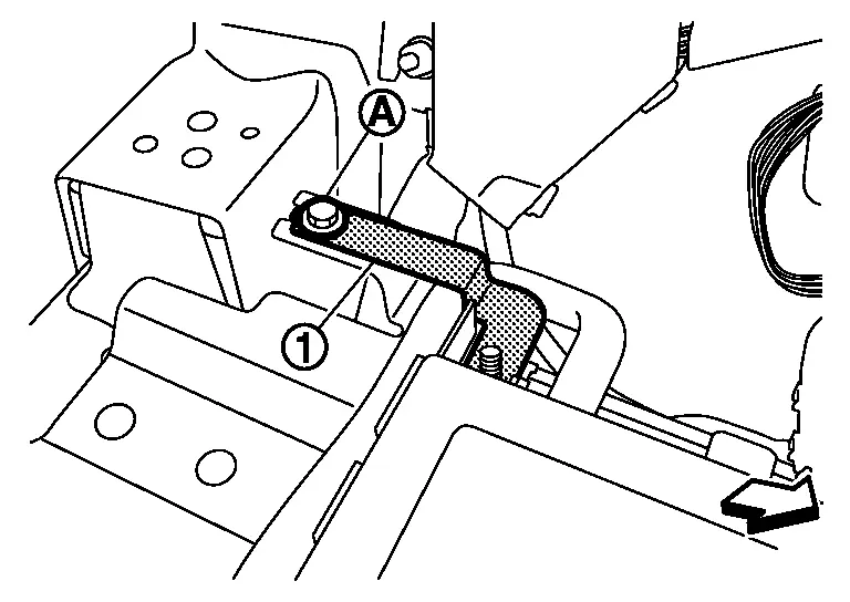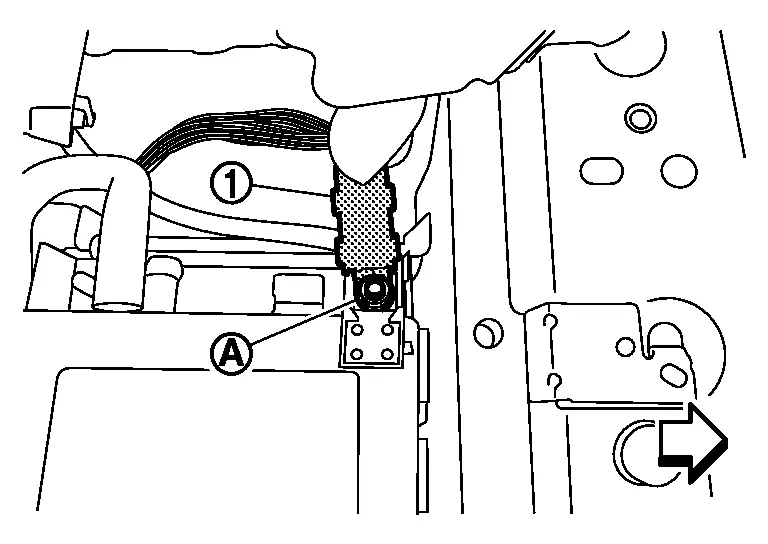 Remove bolt (A), and then remove 12V sub battery (lithium ion battery) negative bracket (1).