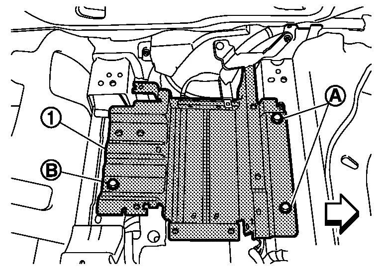 Remove bolts (A/B) and then remove sub battery bracket B (1).