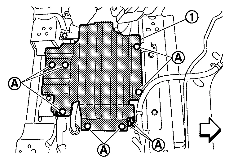 Remove mounting bolts (A), and then remove sub battery bracket A (1).