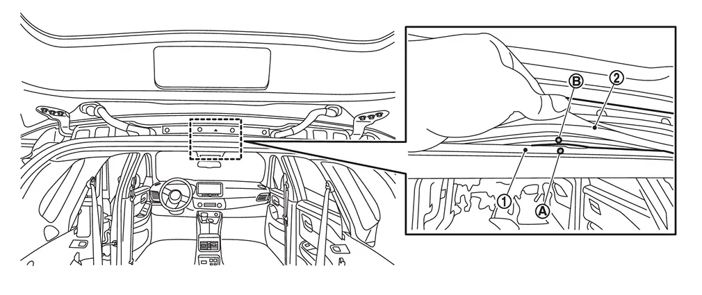 from roof panel, and then pull out rear washer tube B from Nissan Ariya vehicle body.
