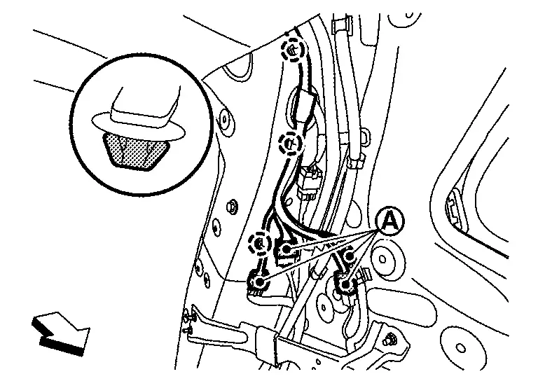 from roof panel, and then pull out back door harness from Nissan Ariya vehicle body.