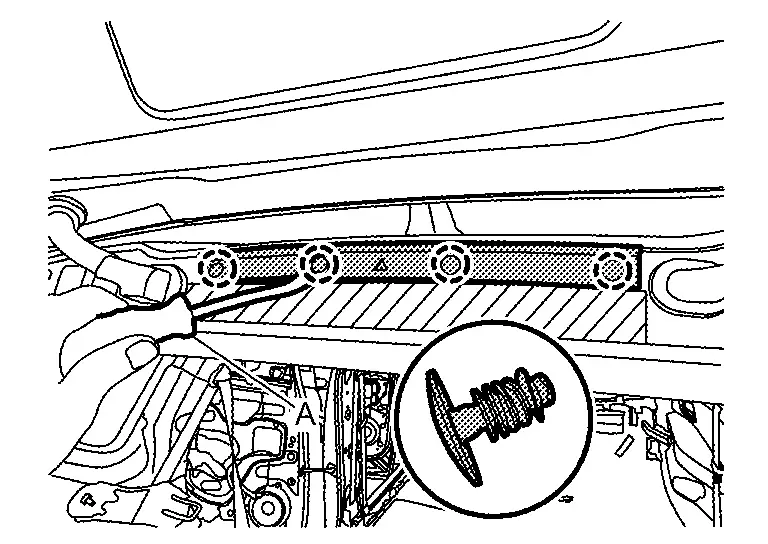 Disengage roof seal fixing clips using a removal tool (A), and then remove roof seal.