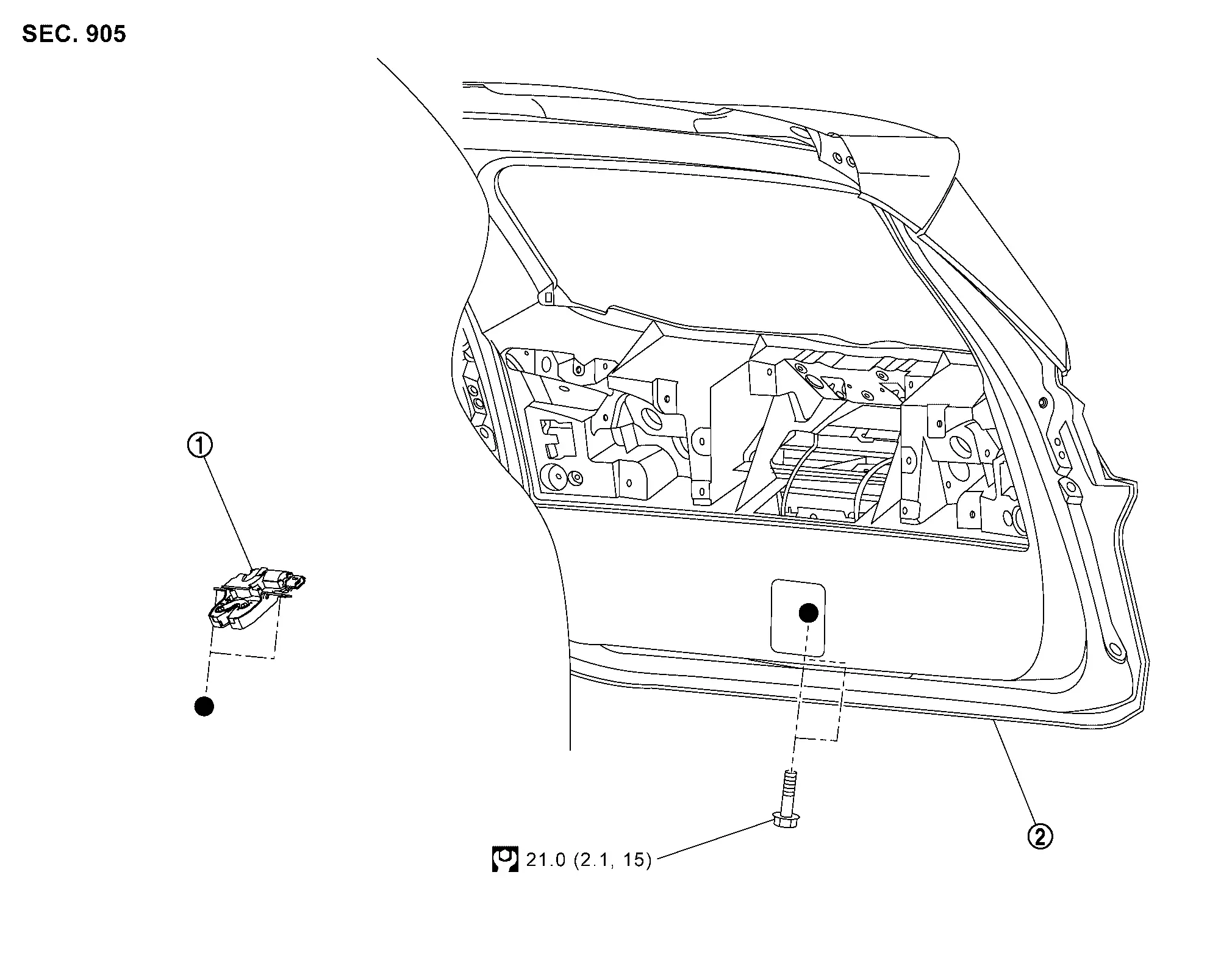 Nissan Rogue (T33) 2021-Present Service Manual: Removal and Installation :: Back Door Lock