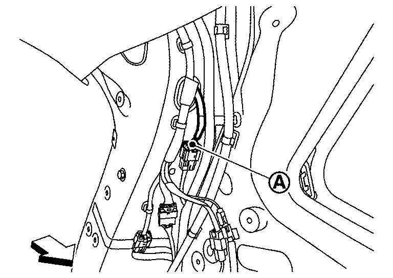 from back main center pillar, and then pull out spindle unit harness from Nissan Ariya vehicle body.